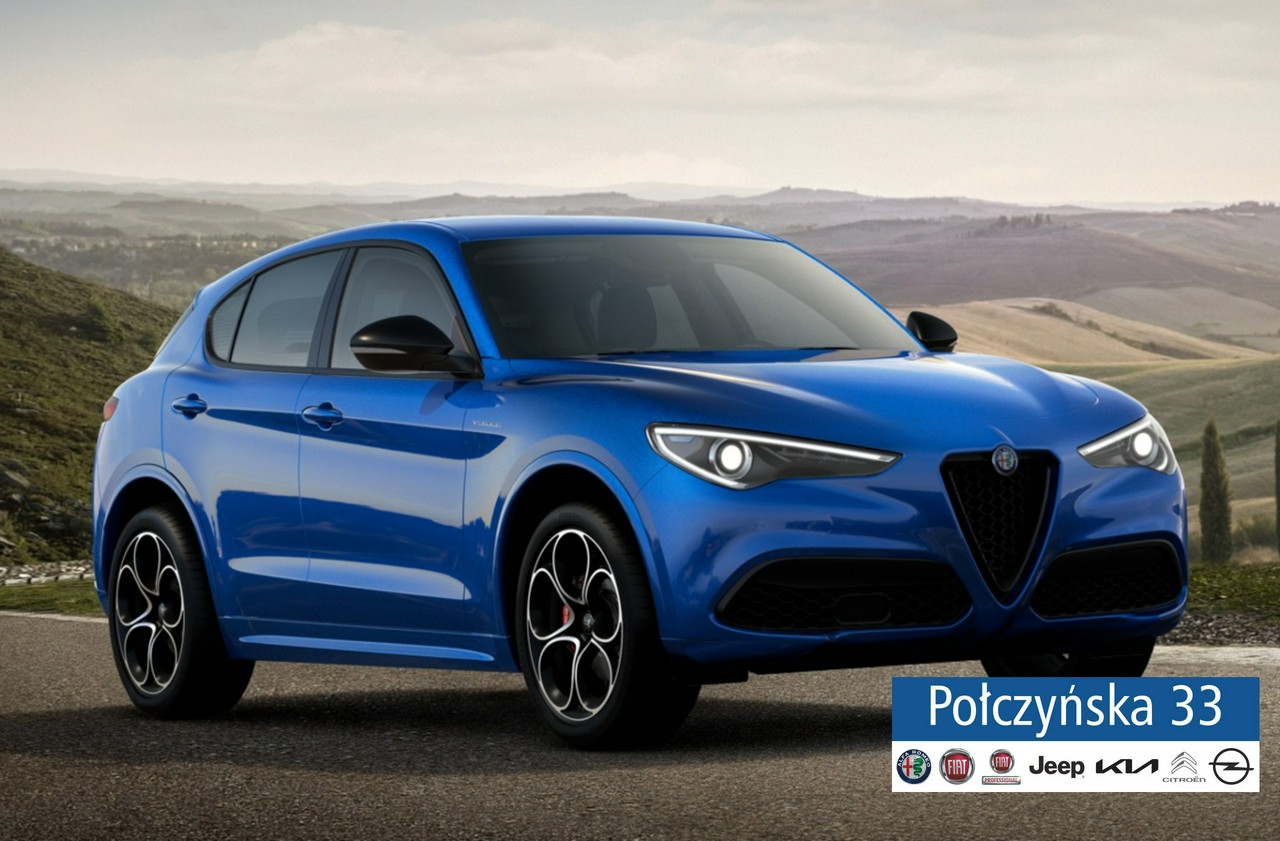 Alfa Romeo Stelvio Veloce Q4 AT 2.0 280 KM|Niebieski Misano|Czarna skóra|2022