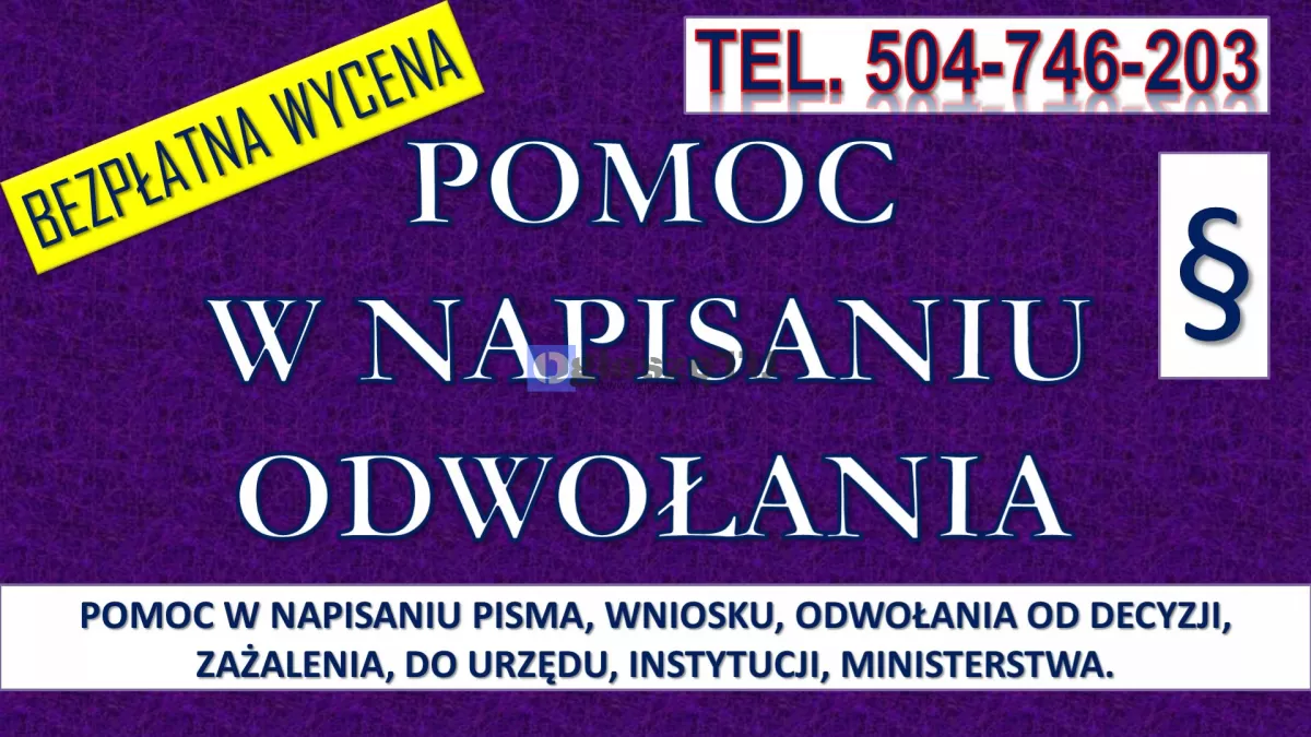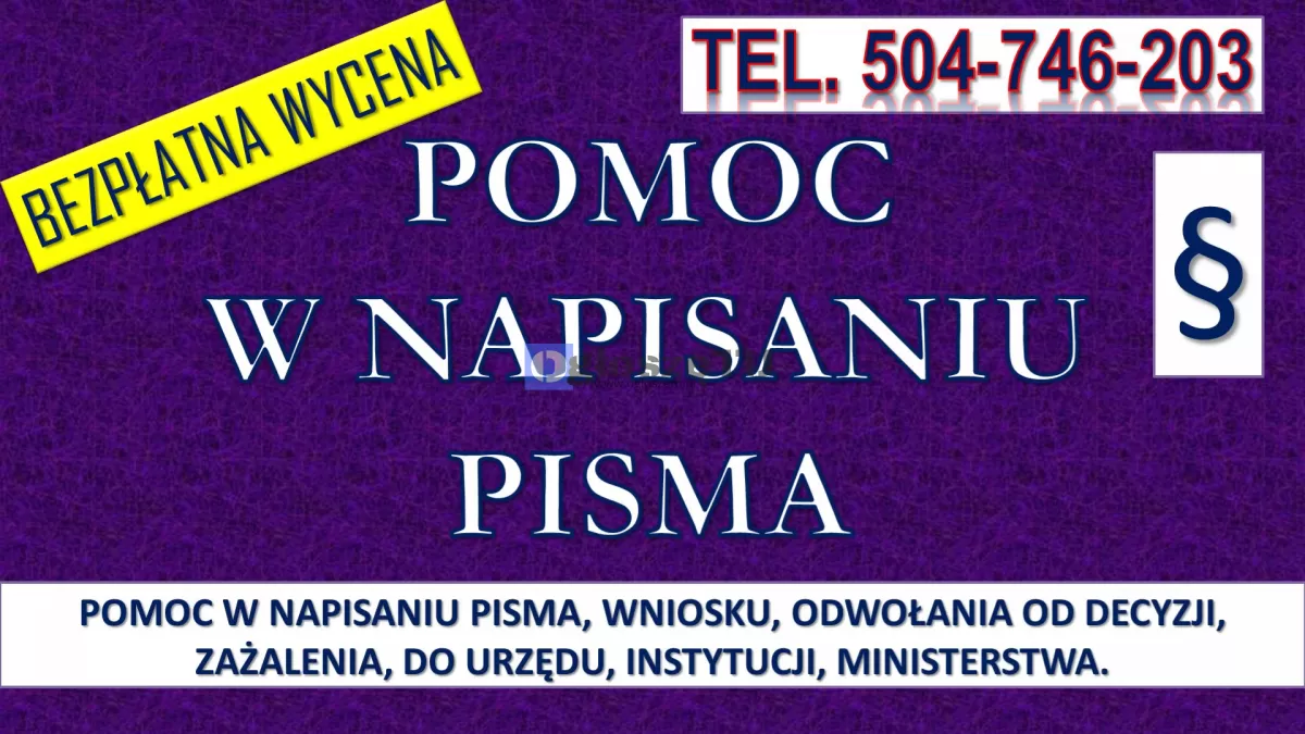 Napisanie pisma cena, tel. 504-746-203. Biuro pisania pism podań, odwołanie.