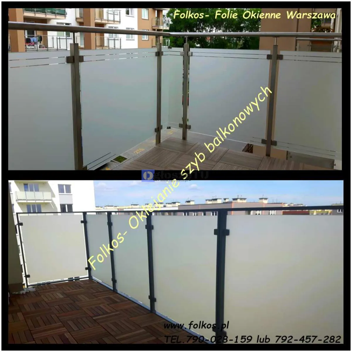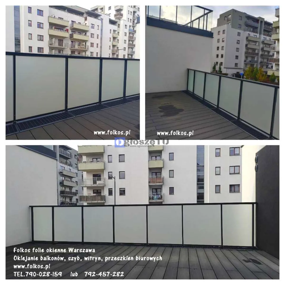 Folie matowe zewnętrzne Folkos Warszawa- folie na szklane szyby balkonowe - oklejanie balkonów Warszawa