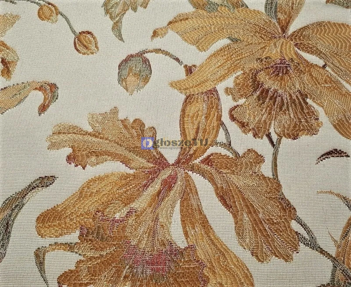 Tkanina tapicerska LOTUS to żakard, który charakteryzuje się bogatym wzorem florystycznym, łączącym delikatne, pastelowe odcienie różu, beżu i zieleni. Struktura materiału jest gładka i miła w dotyku, co dodaje jej elegancji i klasy.