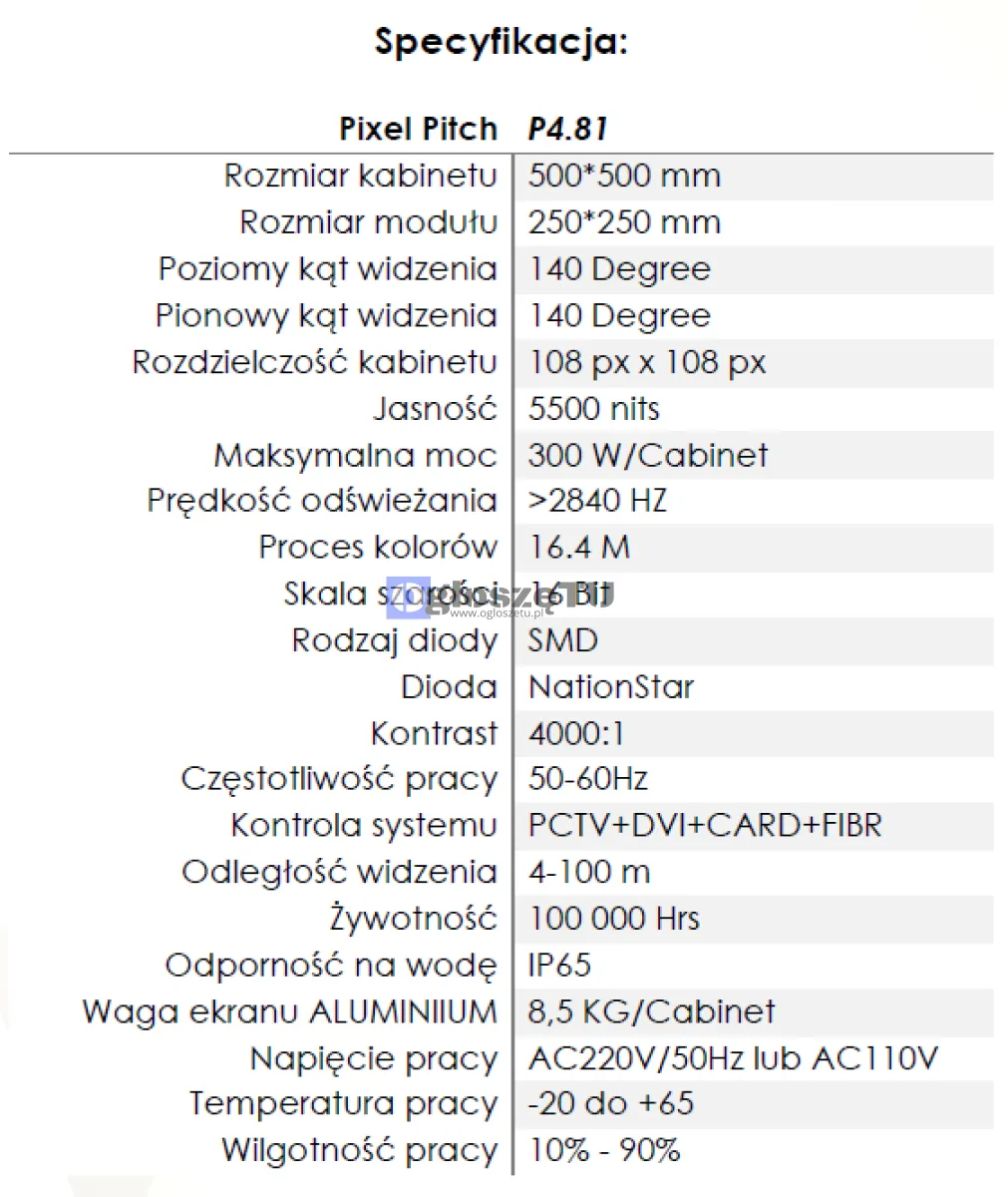 Parametry techniczne ekranu LED P4 oraz P3 znajdują Państwo na dostępnych zdjęciach