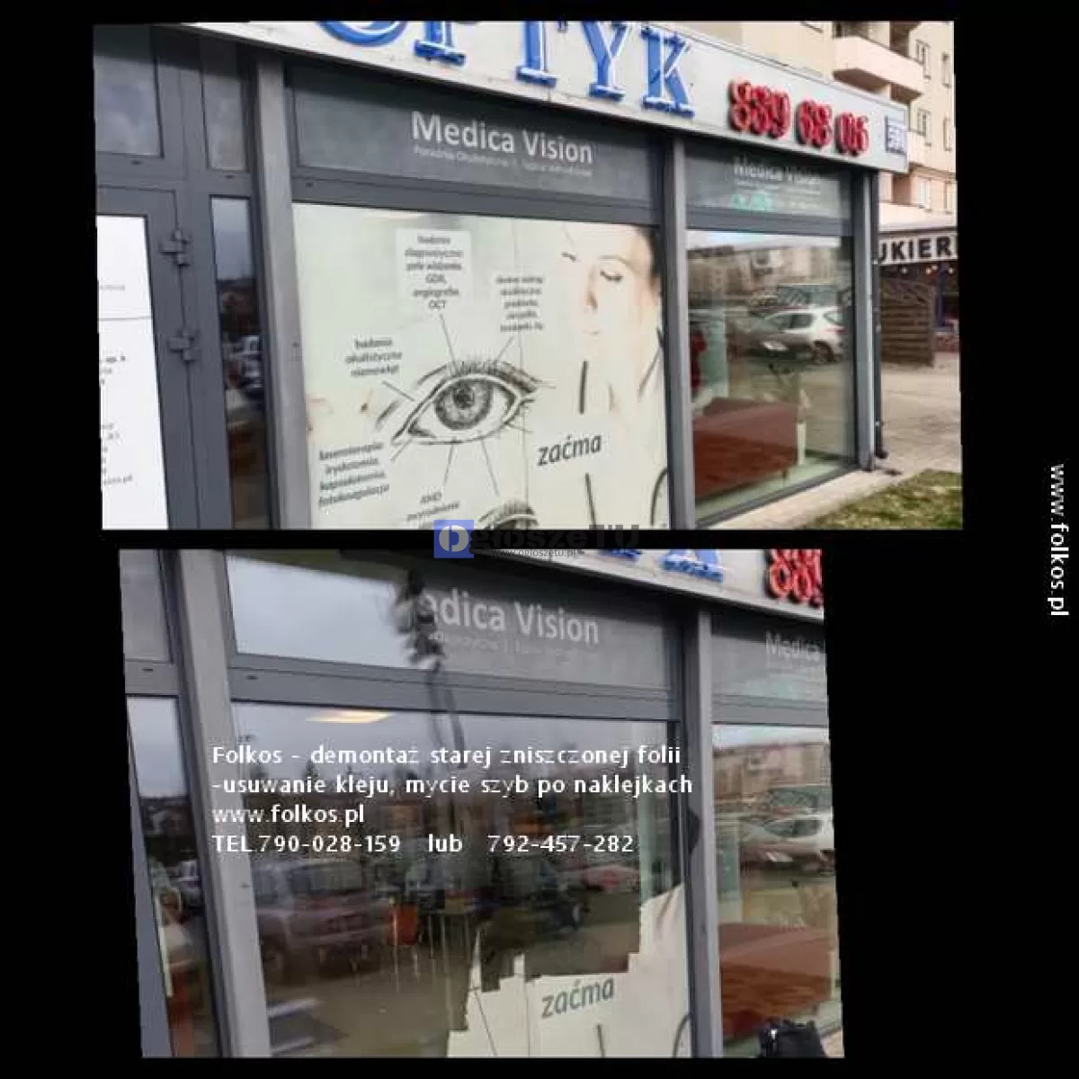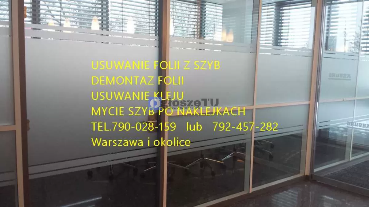 Warszawa- demontaż starych reklam - starej folii z szyb,usuwanie folii z witryn sklepowych - mycie szyb, usuwanie kleju, naklejek.