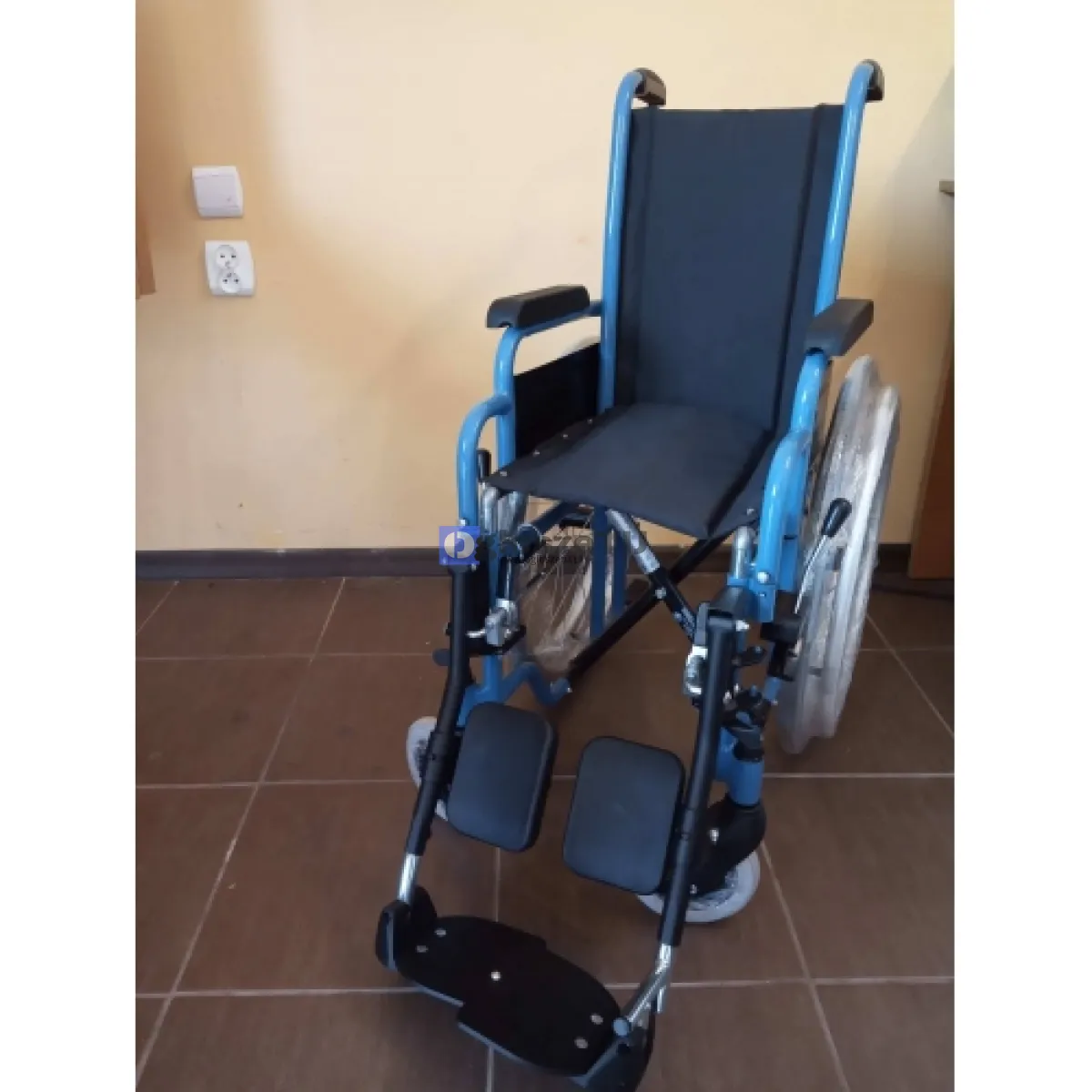 Wózek inwalidzki dziecięcy z możliwością ustawienia nogi w pozycji wyprostowanej tzw. wózek specjalny.