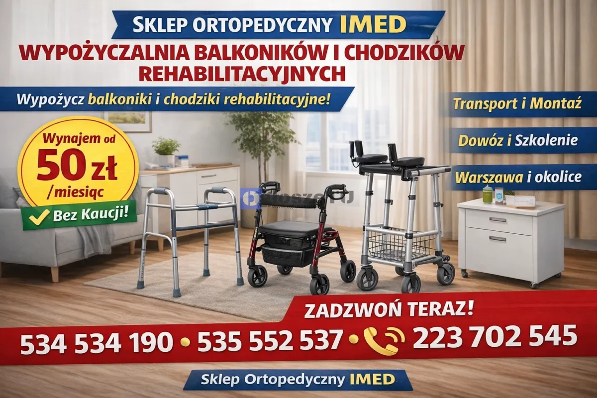 Sklep Ortopedyczny IMED oferuje wynajem balkoników (zwykłych i typu ambona) oraz chodzików rehabilitacyjnych na terenie Warszawy i okolic. Nasze balkoniki i chodziki idealnie sprawdzają się w rehabilitacji oraz codziennym wspomaganiu poruszania osób starszych, chorych i po urazach. Sprzęt rehabilitacyjny znacząco zwiększa bezpieczeństwo i samodzielność użytkownika.